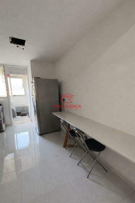 São 2 quartos, sendo 1 suíte com armário embutido, além de banheiro social completo. Ambos com armários planejados. O imóvel conta ainda com terceiro banheiro no quarto de empregada, cozinha ampla e reformada, área de serviço independente, será entregue parcialmente mobiliado e possui 1 vaga de garagem.