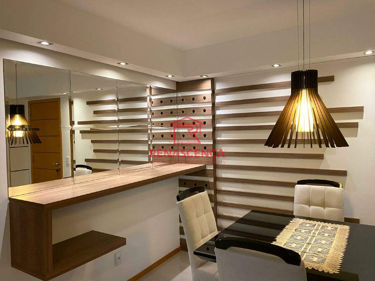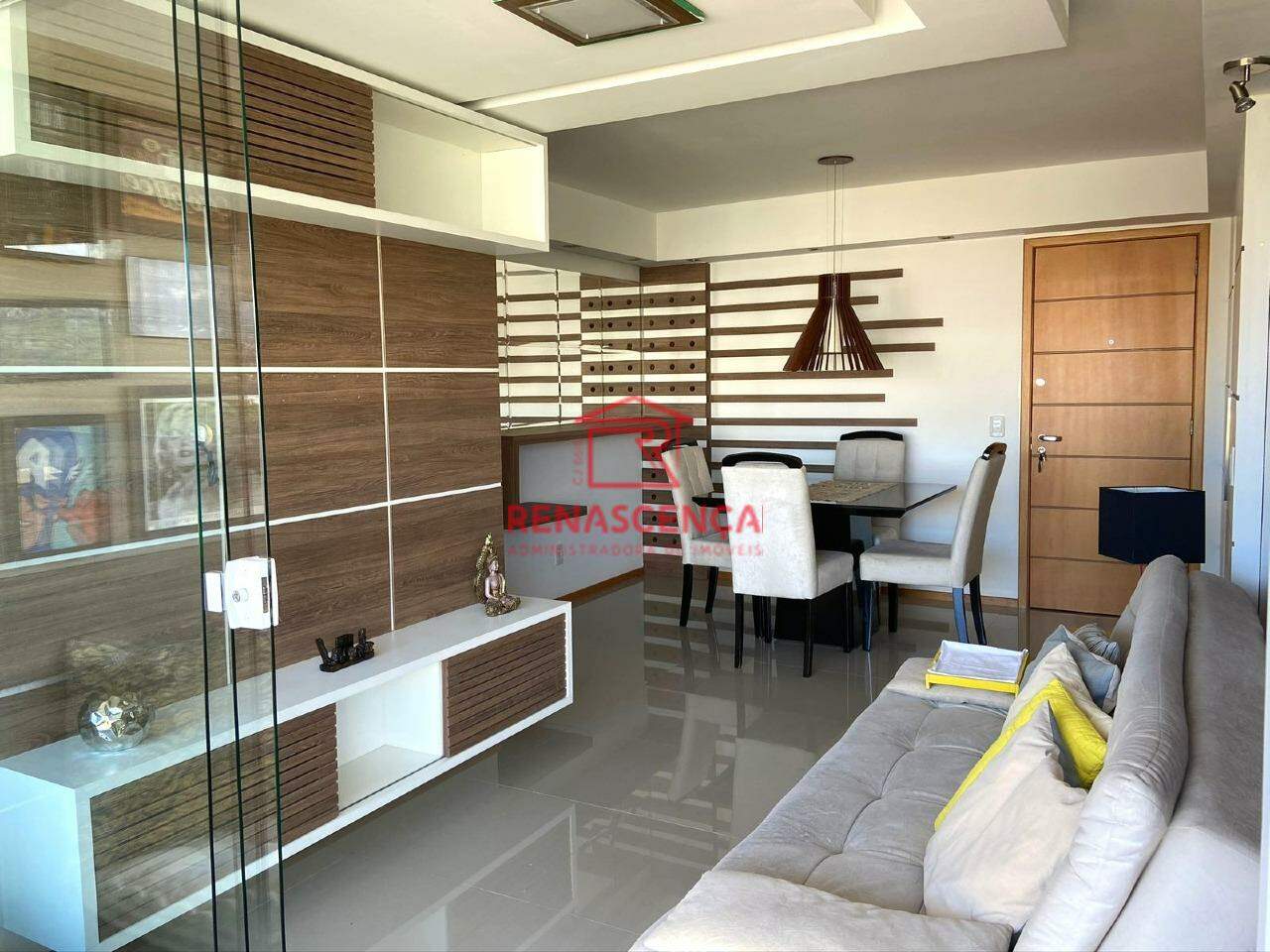 Logo ao entrar, você é recebido por uma sala ampla em dois ambientes, totalmente mobiliada e decorada por arquiteto. O teto rebaixado em gesso com projeto de iluminação cria um clima aconchegante no fim do dia, enquanto o porcelanato e a parede espelhada ampliam ainda mais a sensação de espaço e elegância. É o cenário perfeito para receber amigos ou simplesmente relaxar após um dia de trabalho.