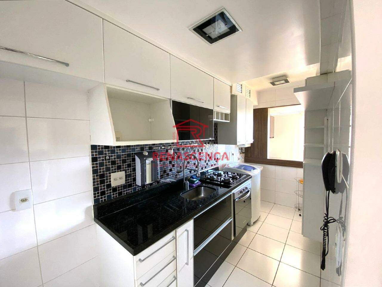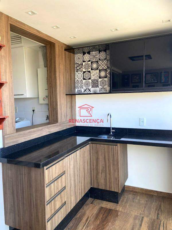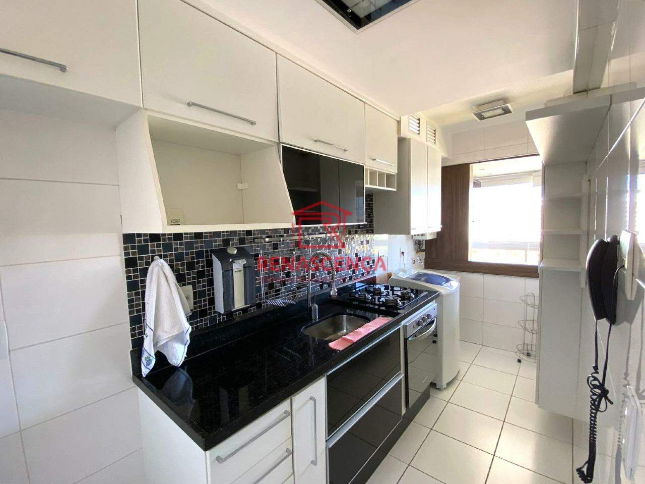 A cozinha planejada é funcional e elegante, integrada à área de serviço, além de um banheiro social igualmente bem acabado.