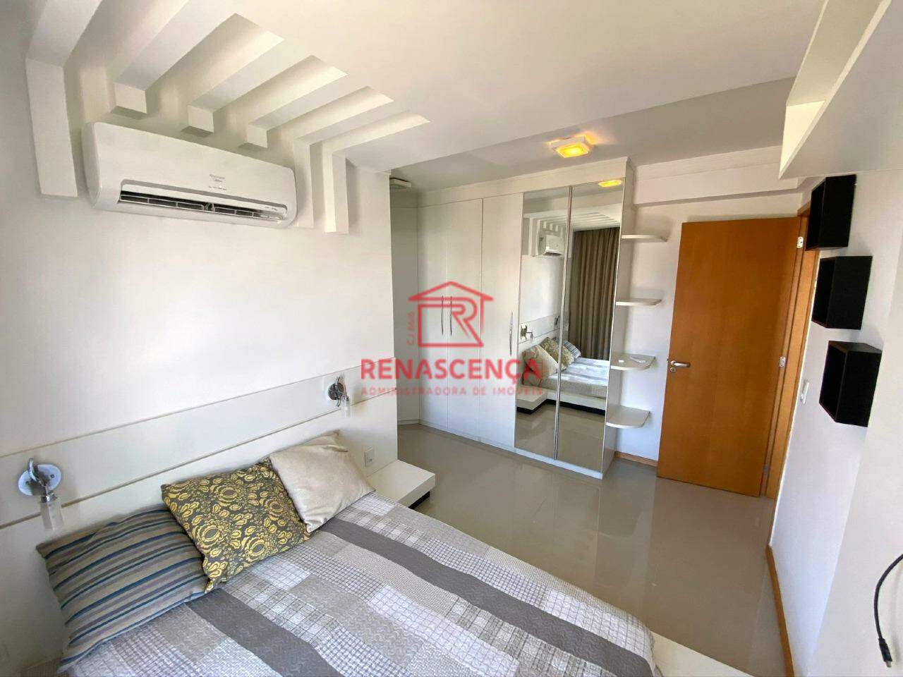 Os dois quartos seguem o mesmo padrão de cuidado e bom gosto, todos mobiliados. A suíte oferece conforto e privacidade, com ar-condicionado split garantindo temperatura agradável em qualquer estação. A sala também conta com split, assim como os quartos — conforto absoluto o ano inteiro.