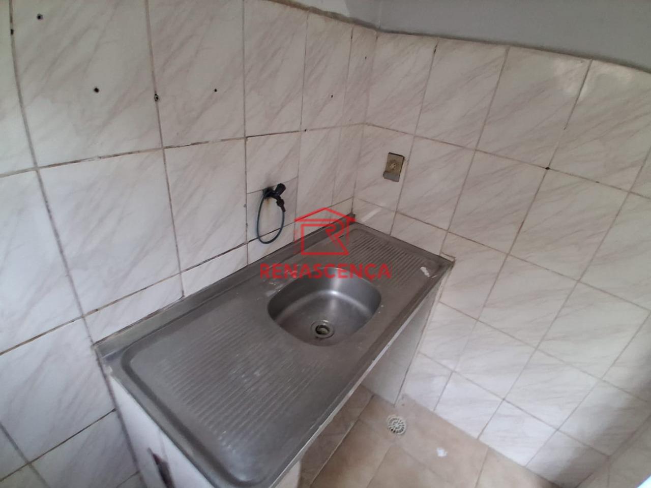 Sala com espaço confortável, toda em piso frio, com uma cozinha de pia inox, e banheiro social.